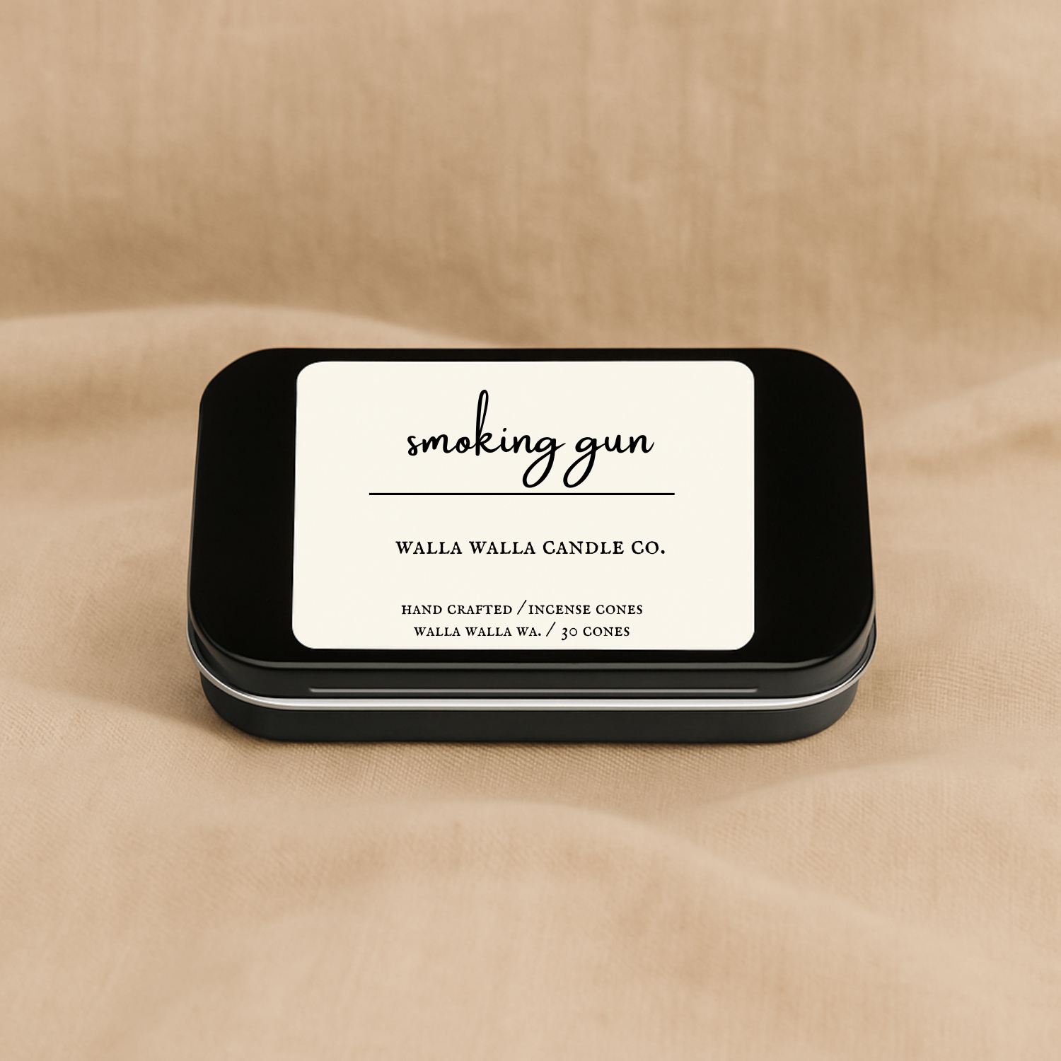 Our incense cones are hand dipped in small batches in the Walla Walla valley and made top flow activated charcoal cones,  phthalate free fragrance oils which are infused with essential oils and a little love🖤